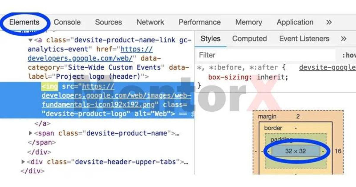 برای تعیین اینکه تصویر در چه اندازهای نمایش داده میشود میتوان از پنل DevTools Elements استفاده کرد.